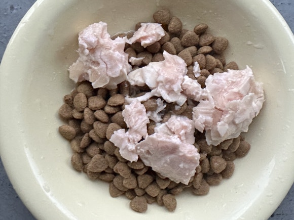 이후, 교차 급여를 안내를 받았기에 건사료를 급여해 주었다.