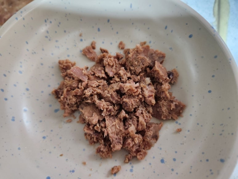 참치는 슈레디드 그대로 먹는거 좋아하는 애가 이렇게 잘 먹을 줄 몰랐는데?!