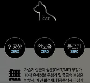 제로프 For Cat 은 환경부 지정 살균제성분 "시트르산(감귤추출물)을 사용했대요.